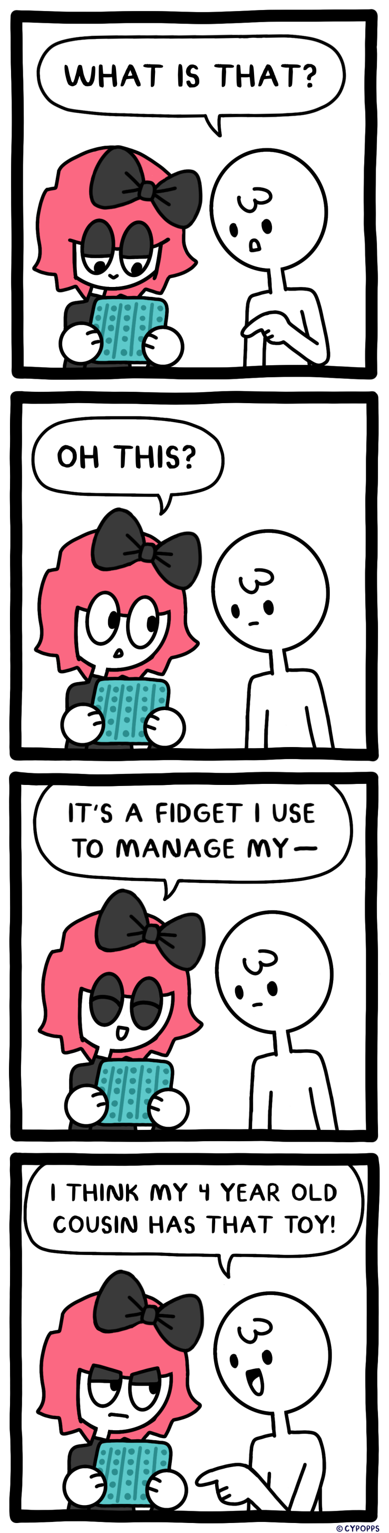 It would help if neurotypical people knew how to recognize fidgets that we use as self regulation aids in order to avoid saying something hurtful and inappropriate.